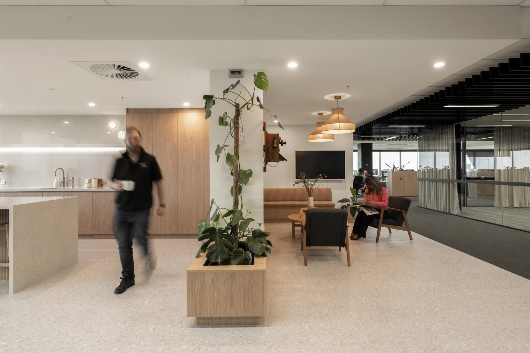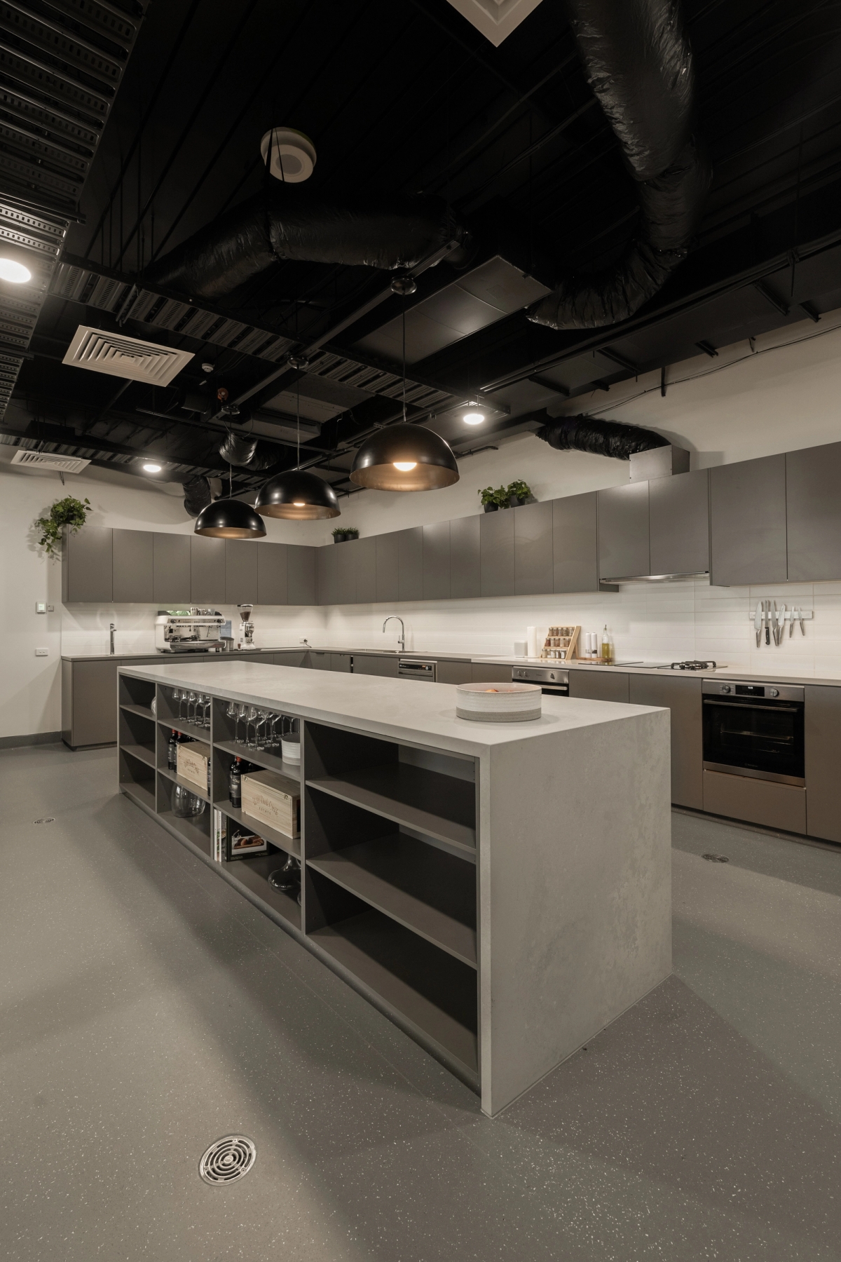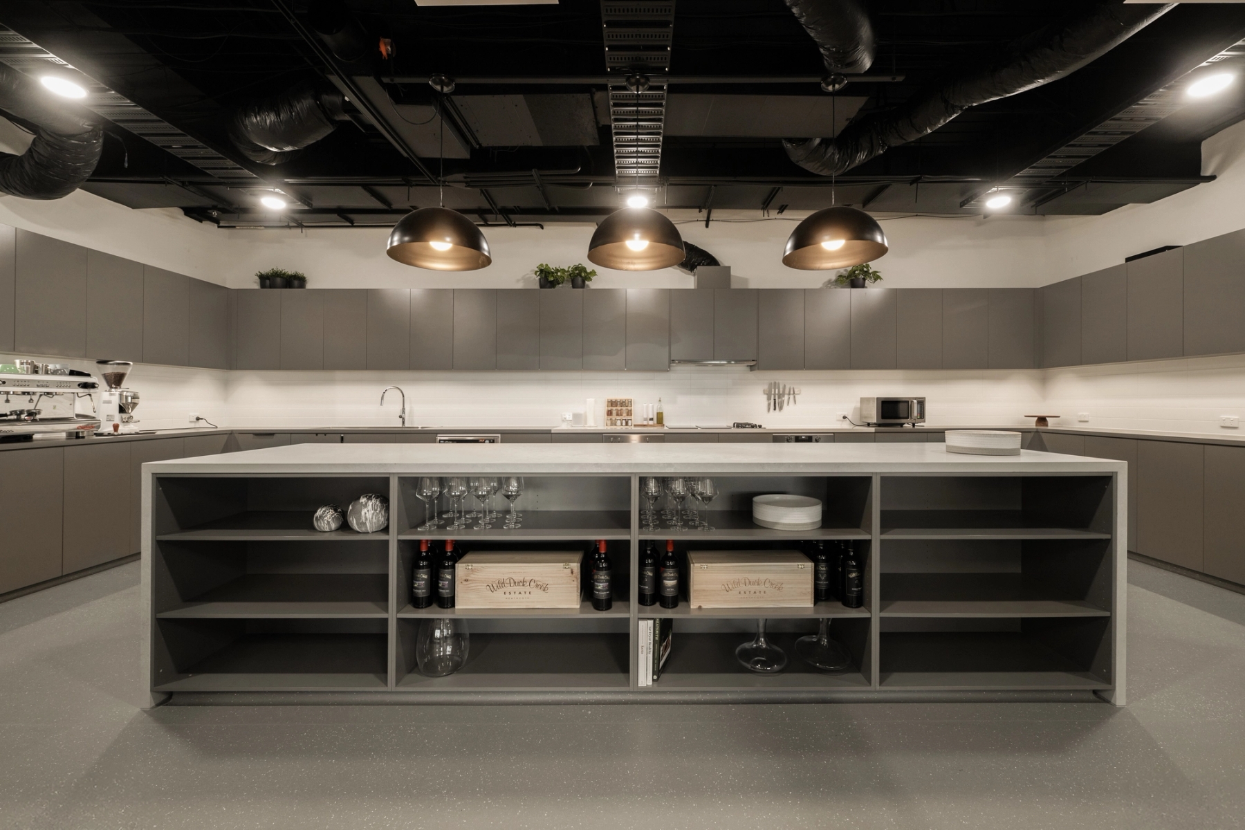 Our recently completed 800m2 office fitout for Switch Telecom is an extension of the company culture around shared meals. With multiple staff breakout areas and commercial level kitchen appliances, it is setup for group cooking.