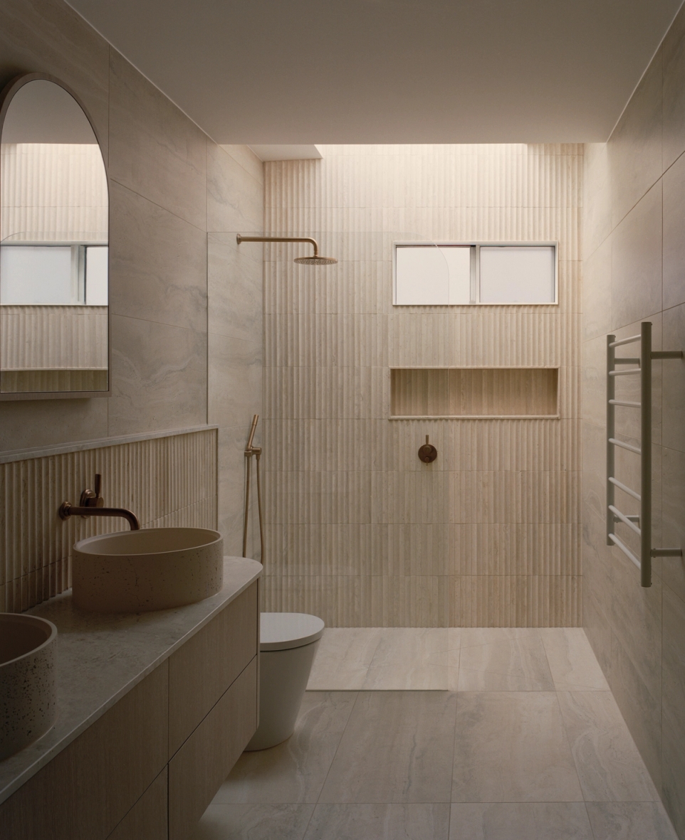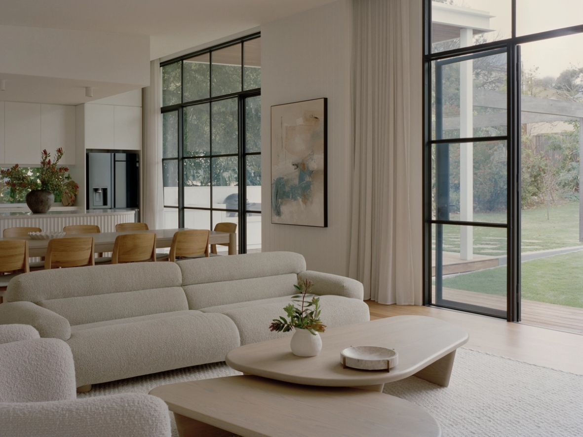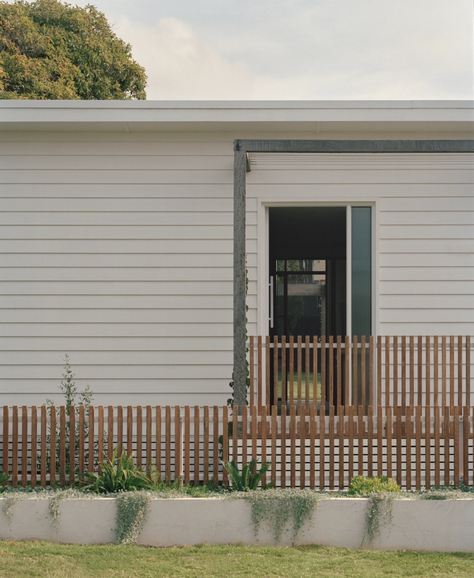 A 5 minute walk from Torquay’s front and back beach, local coffee shops and restaurants and with a north facing rear, this is truly the ideal location for an authentic Torquay beach house. A significant renovation and extension, it was a priority for the owner that front facade kept the character of the traditional Torquay beach shack. However, when you walk through the property, the extension reveals a raked roof opening towards the north, with the house pushed to the edge of the site to maximise the backyard.