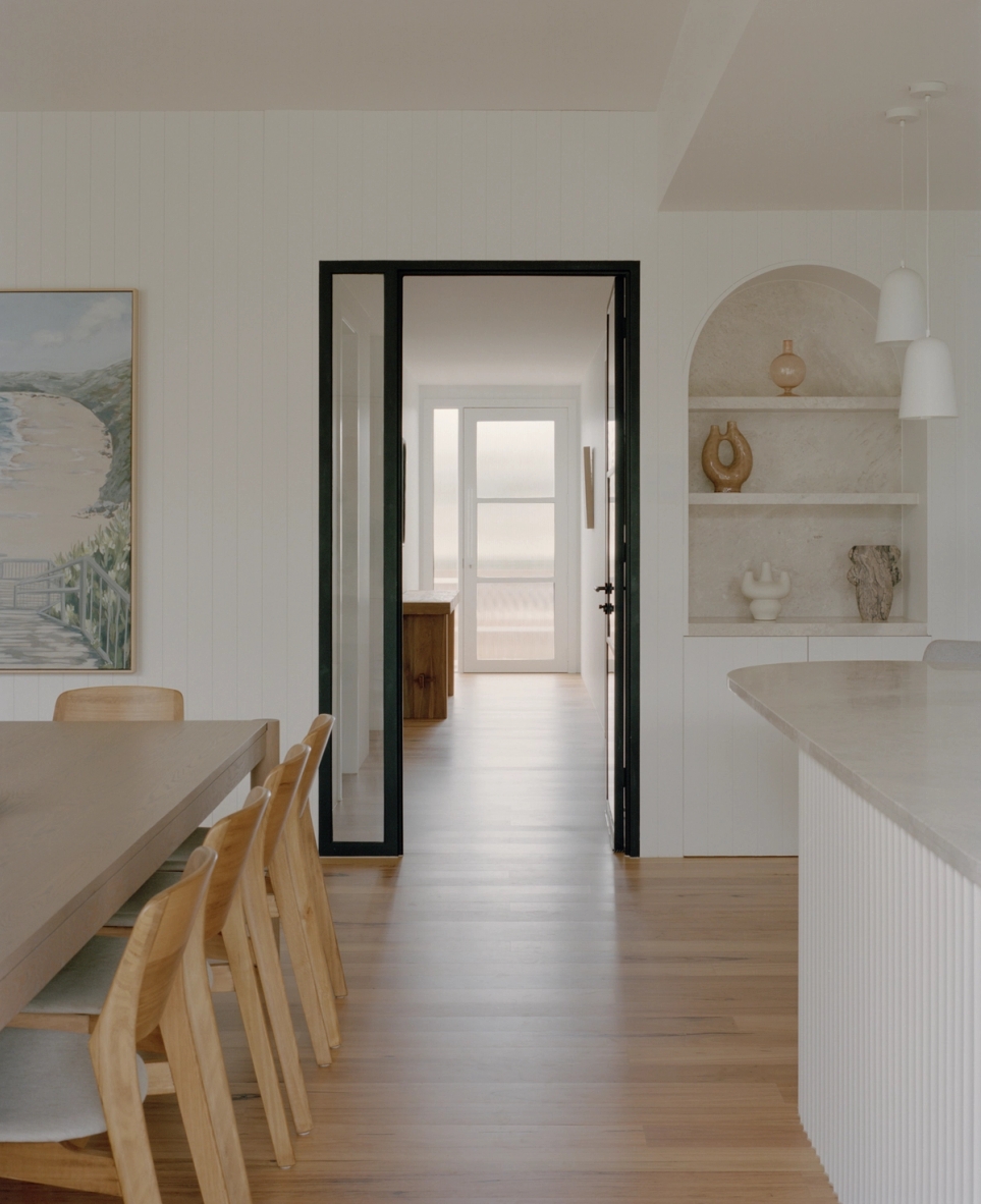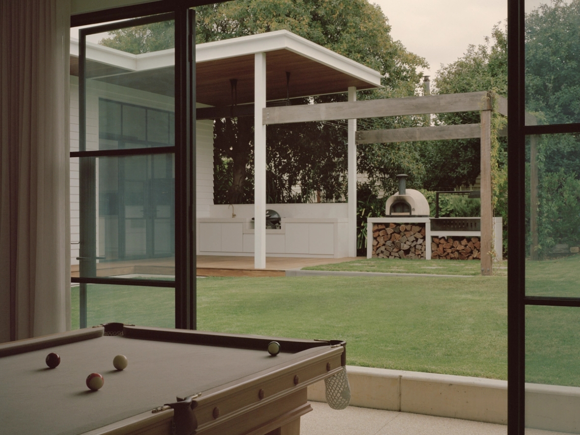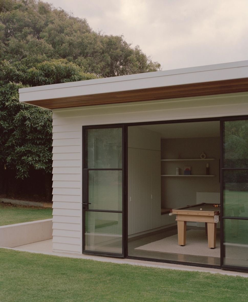 Movement through, and use of the house is highly prioritised. The house relates to the walkability of its location. A side, informal entry allows you to access the outdoor shower and hang your wetsuit without getting sand in the house. The separate pavilion provides a place to play pool and keep the music going once the kids have gone to bed. The backbench of the kitchen extends both into the butlers and as a backbench for the outdoor kitchen, with access to the fridge prioritised.