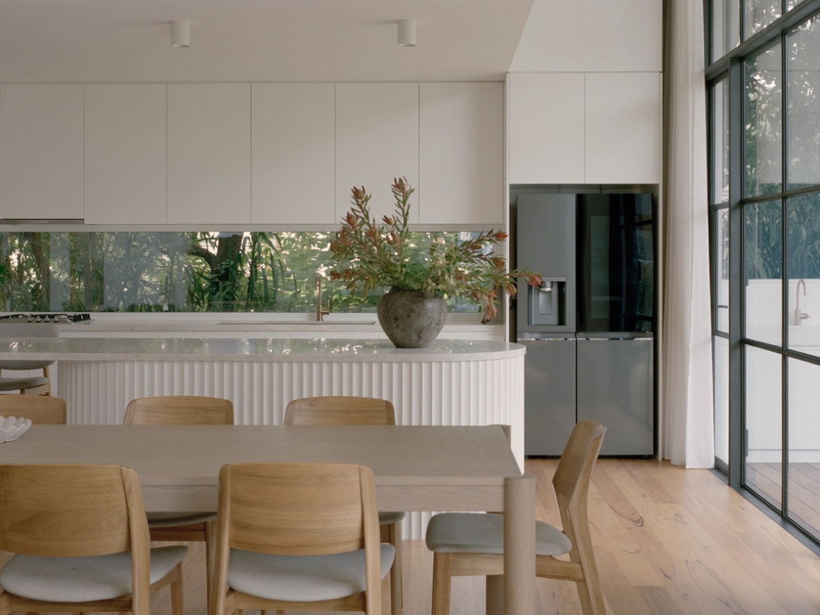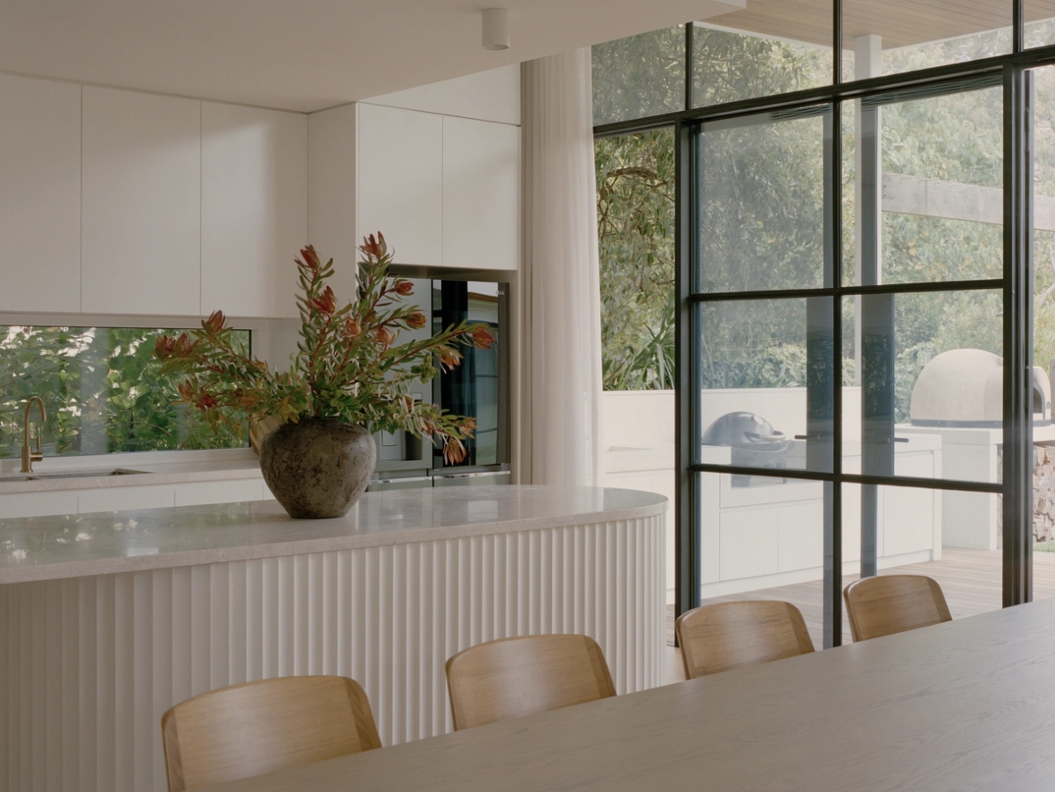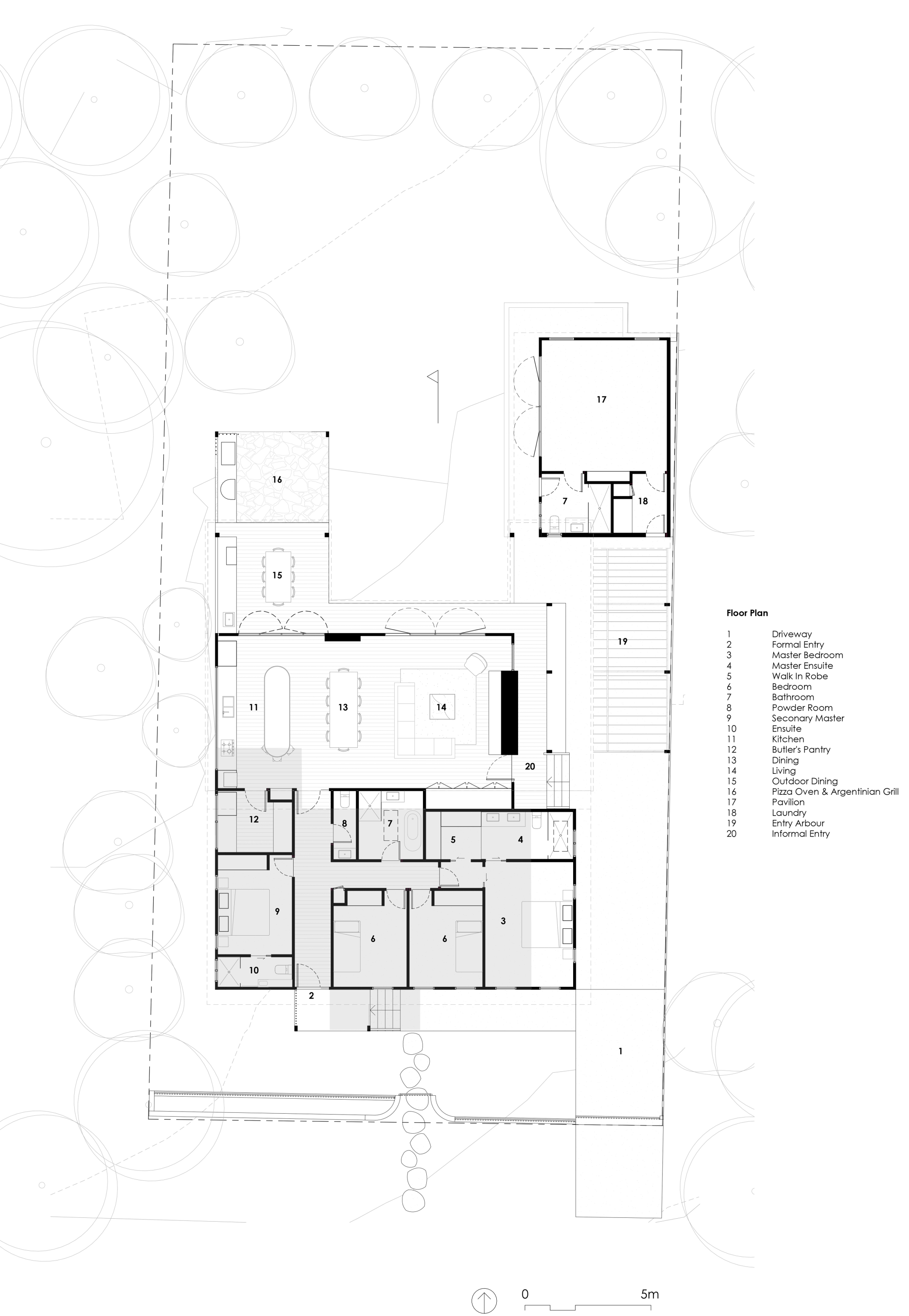 Movement through, and use of the house is highly prioritised. The house relates to the walkability of its location. A side, informal entry allows you to access the outdoor shower and hang your wetsuit without getting sand in the house. The separate pavilion provides a place to play pool and keep the music going once the kids have gone to bed. The backbench of the kitchen extends both into the butlers and as a backbench for the outdoor kitchen, with access to the fridge prioritised.