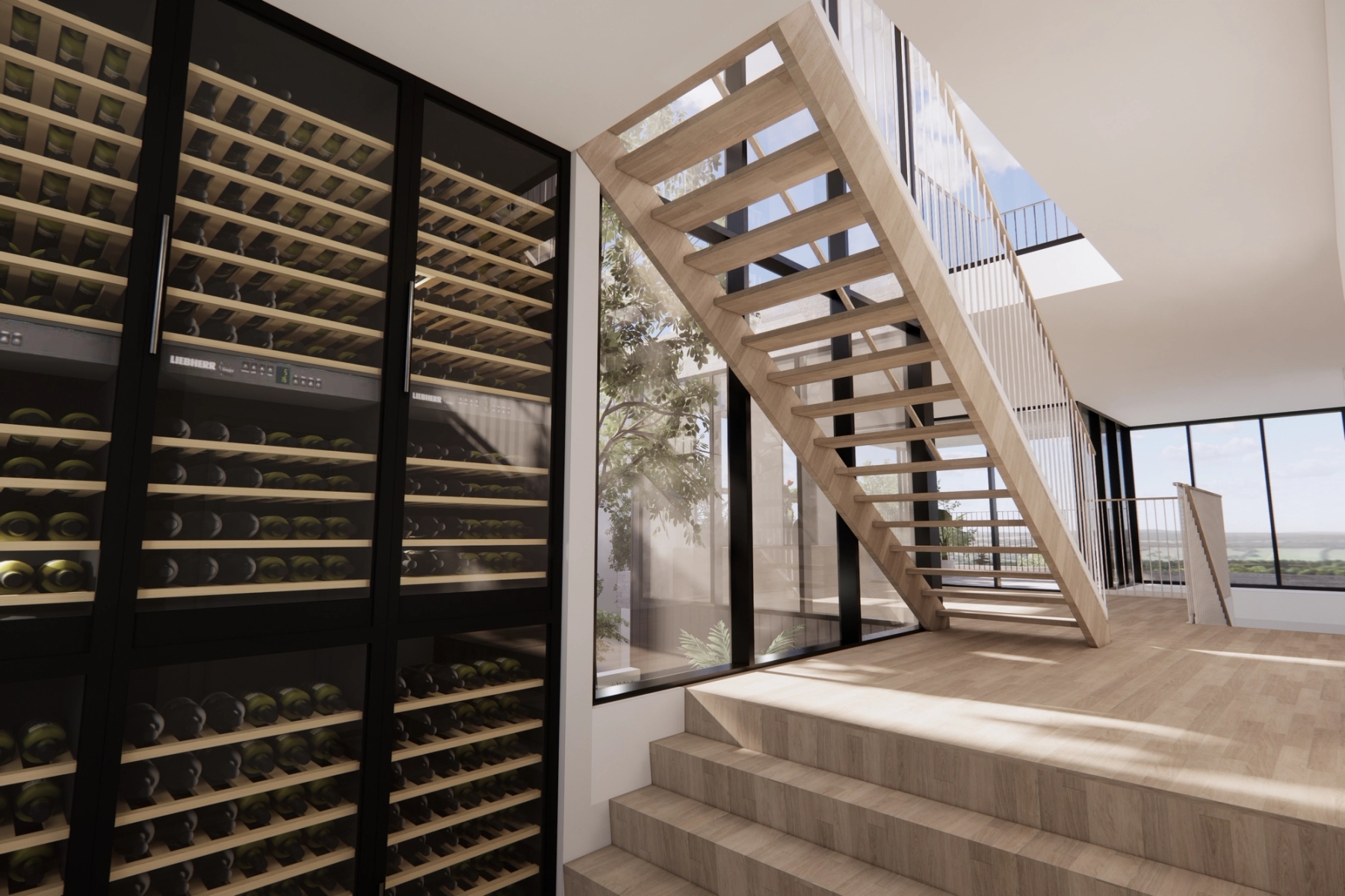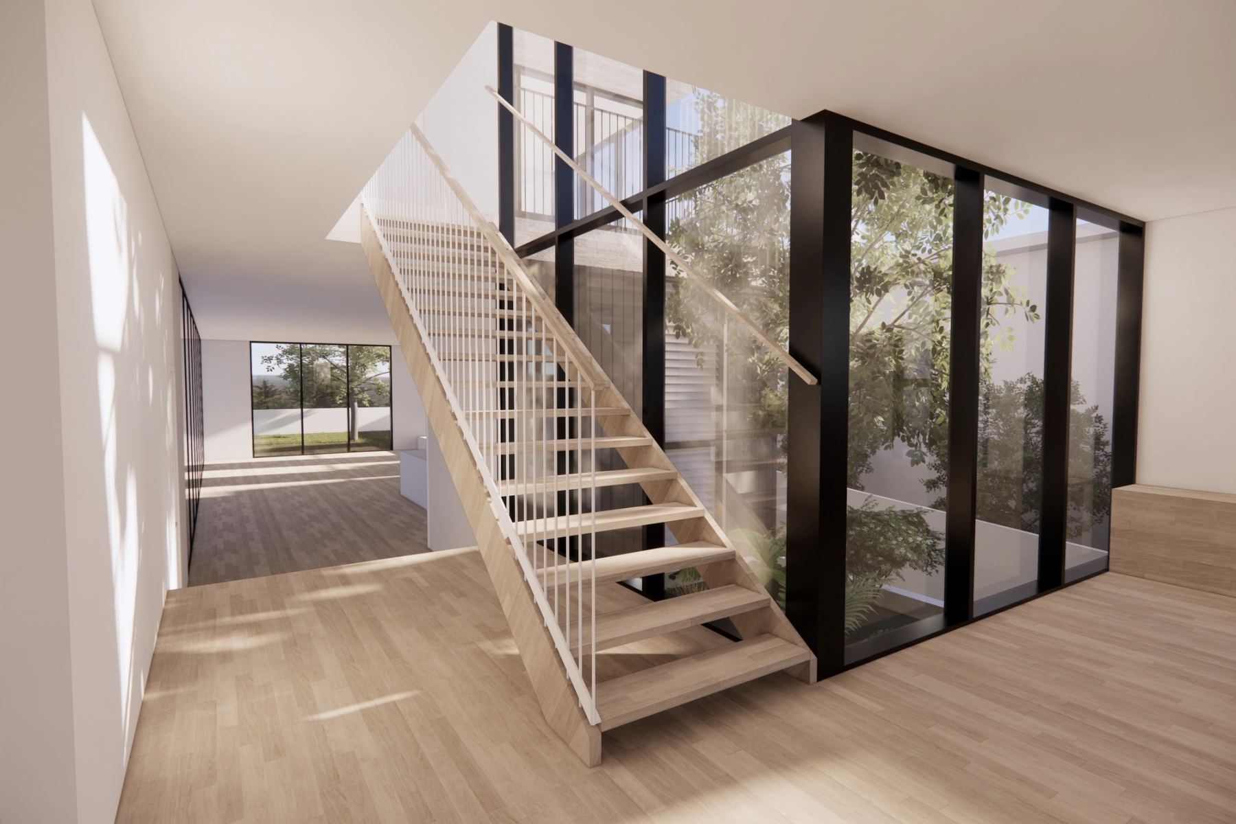 The strategy for the site is opening up the front of the house to the north, making the most of the natural light and maximising the city views. Behind the first row of living spaces is a large courtyard with a tree, providing a second layer of northern light into the building. The main living spaces are then linear, opening to the northern courtyard and to the east to allow morning light to enter the house over the pool.