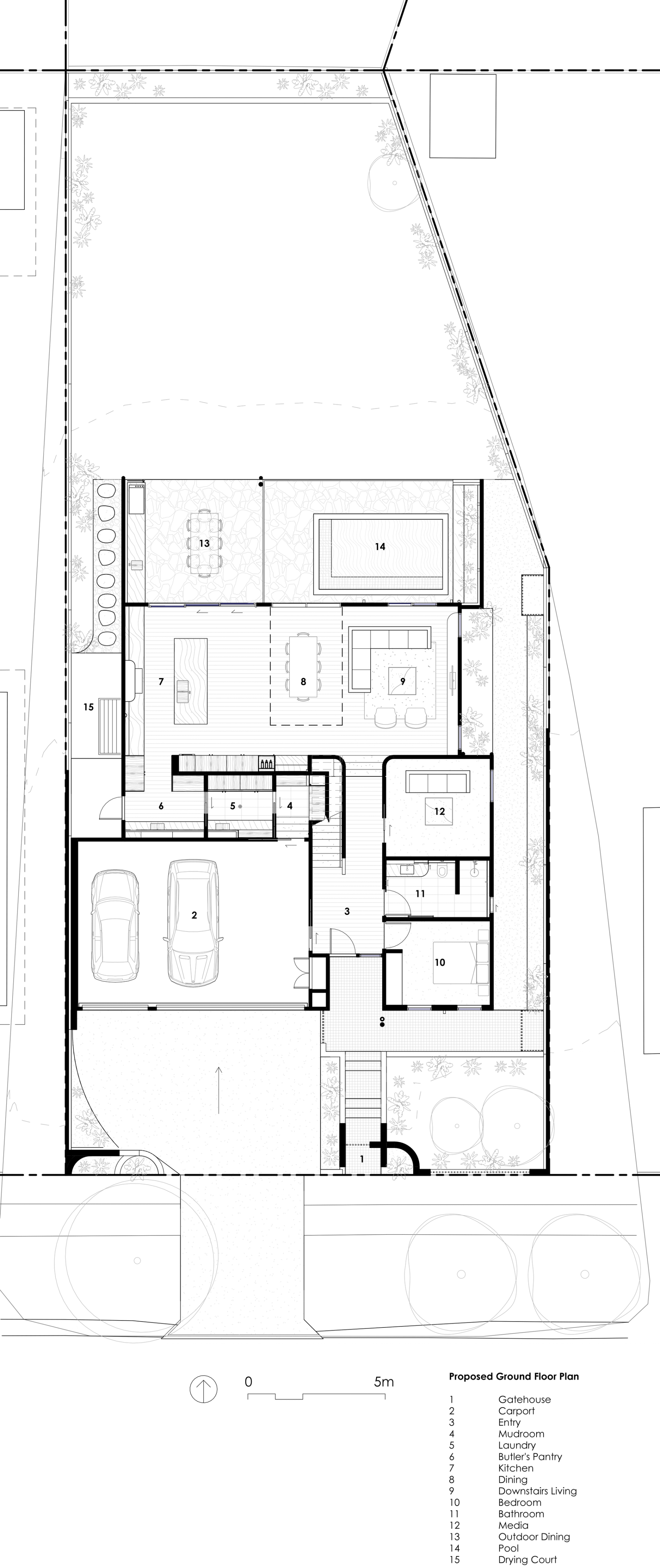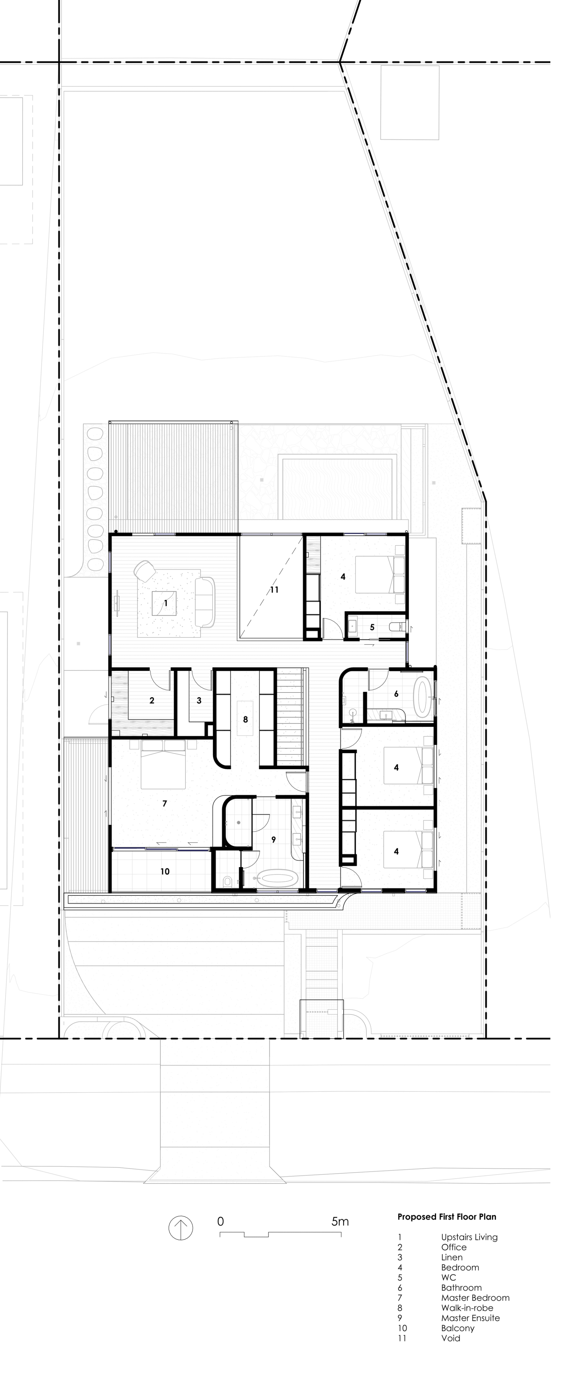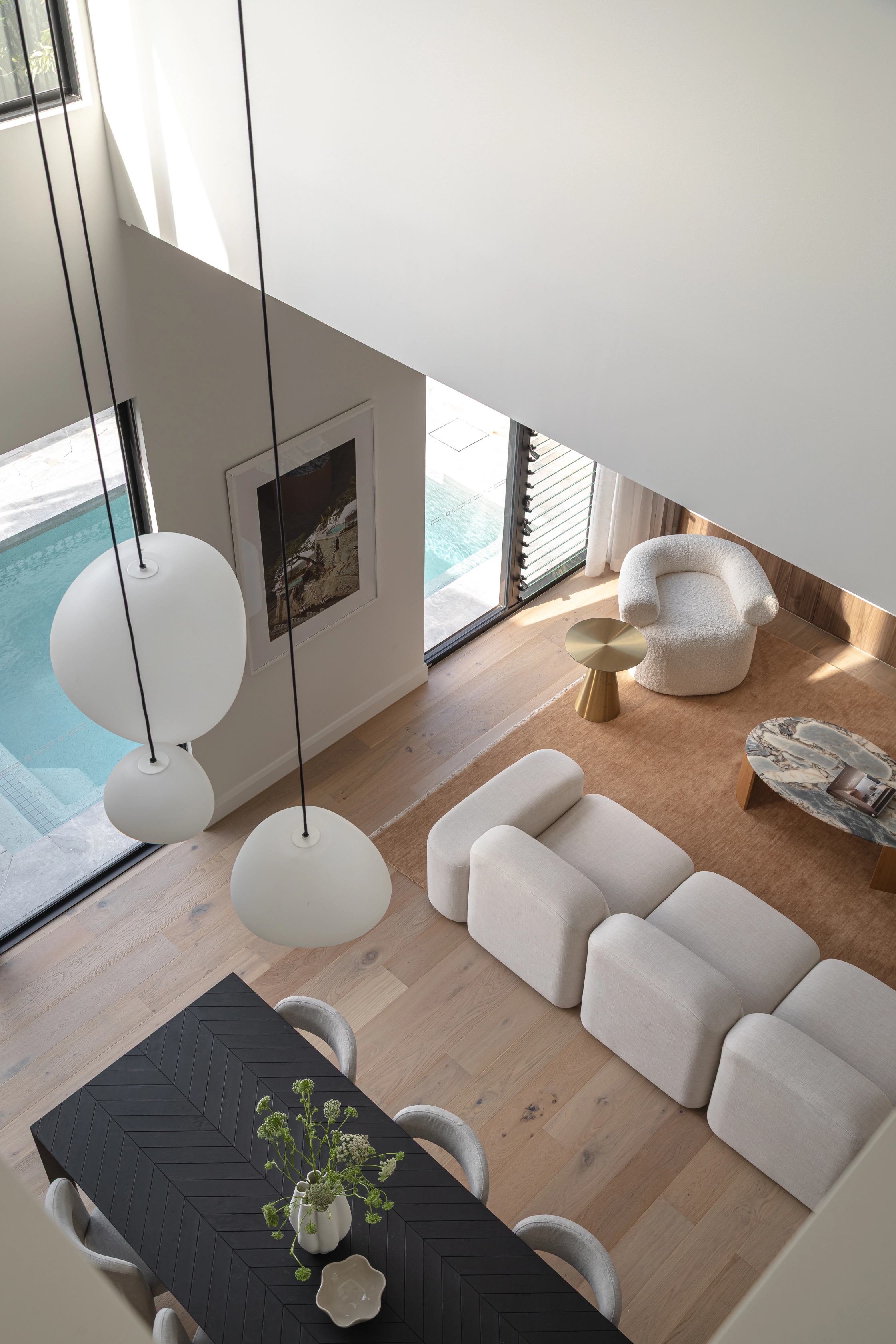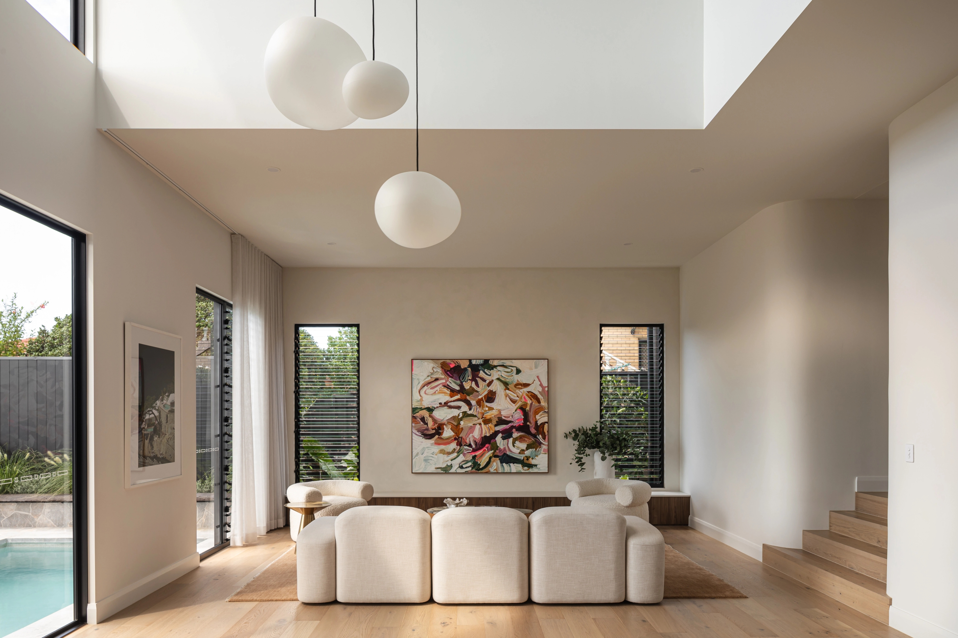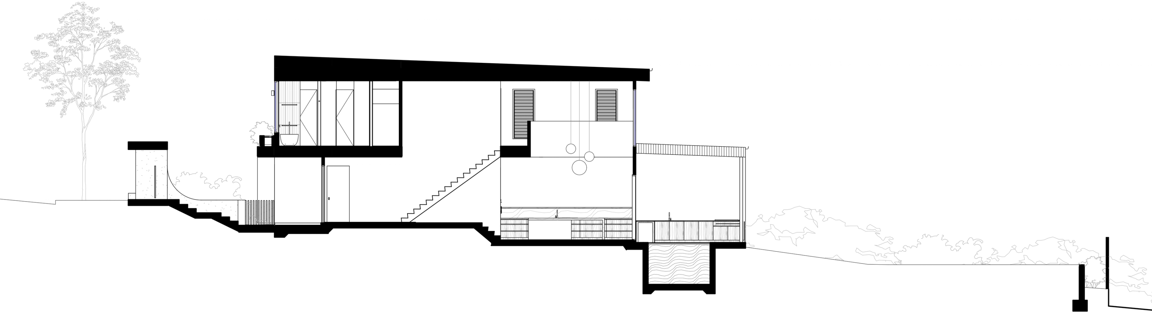 Whites Hill House is an exploration into how a suburban home can become a refuge through the use of privatised space, outlook and materials. The house stretches out along the western boundary to protect against the harsh Queensland afternoon sun and winter prevailing breezes, creating an elevated courtyard that looks out towards Camp Hill. The sunken lounge and double height living and dining spaces create a unique experience which is authentically connected to the site.