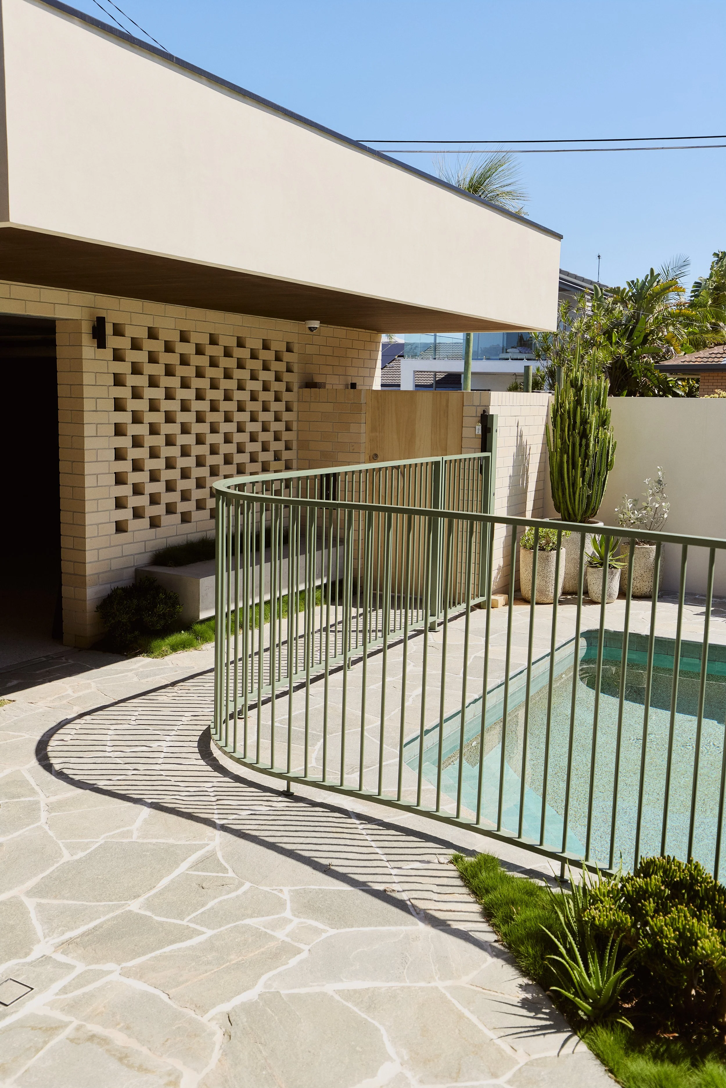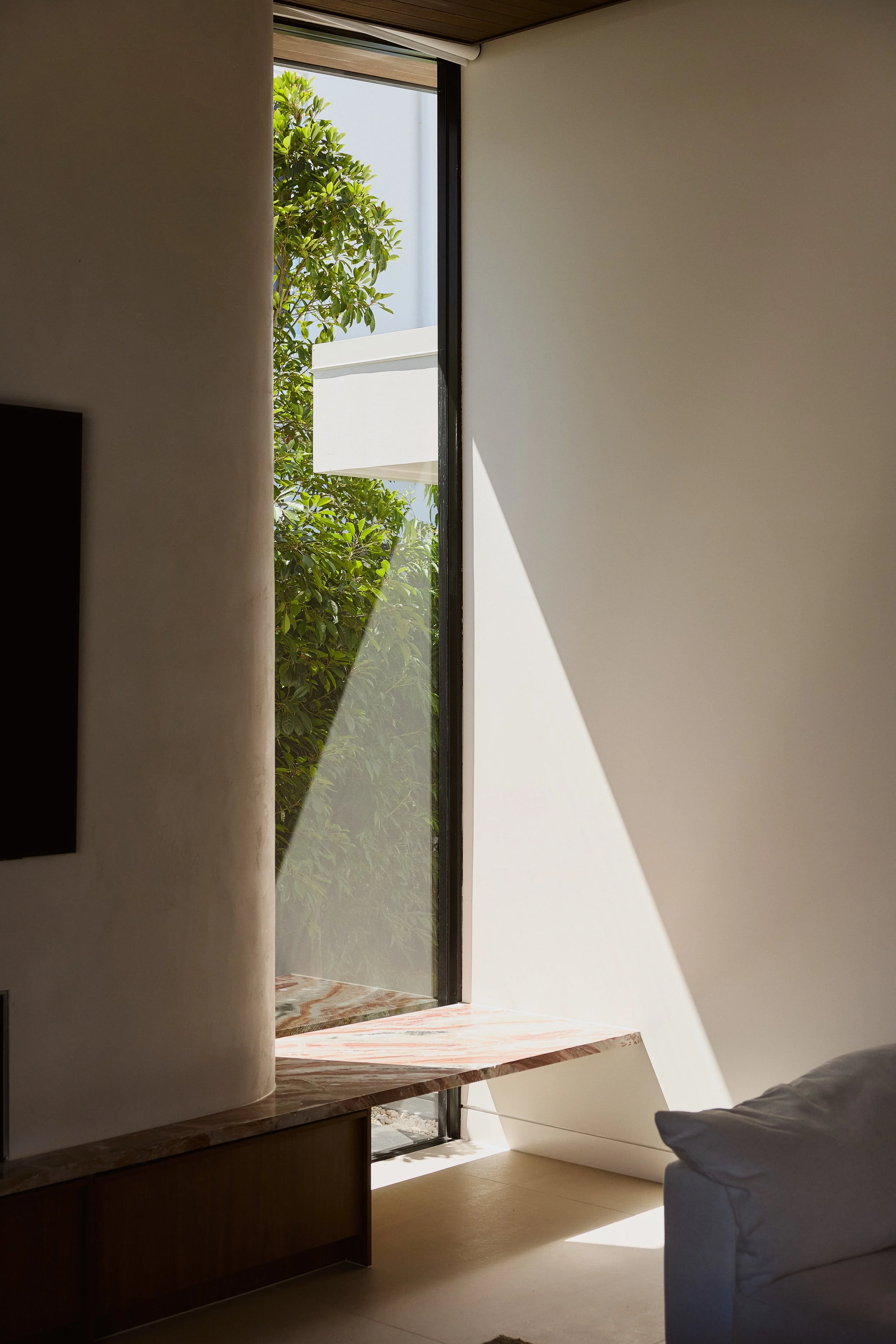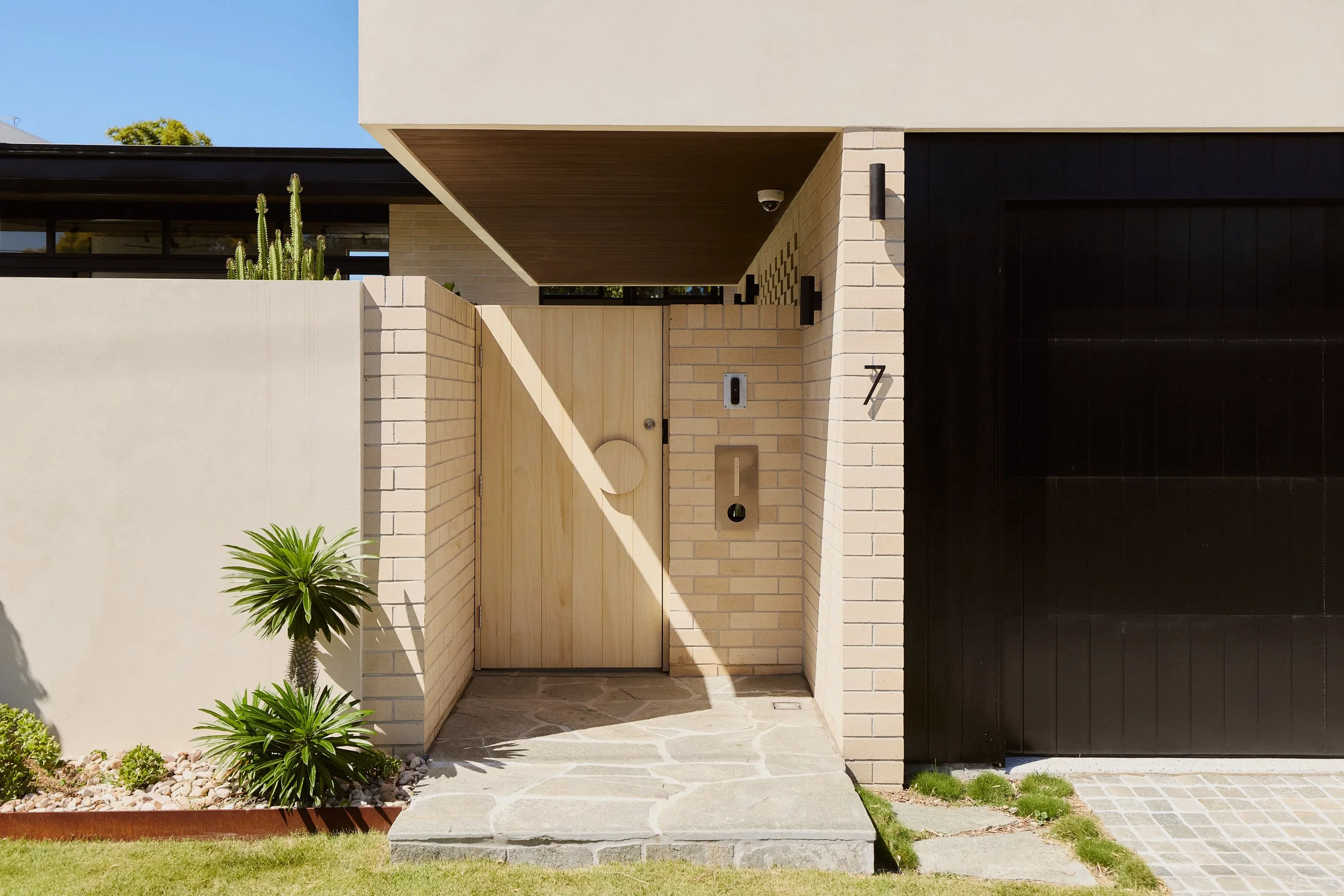The project is an exploration of entry sequence, questioning when the ‘front door’ threshold actually occurs. The combination of a private gate from the street, along with a living spaces that seamlessly flows from interior to exterior, the front yard becomes the first ‘room’ of the house, extending the threshold experience to enter the home.